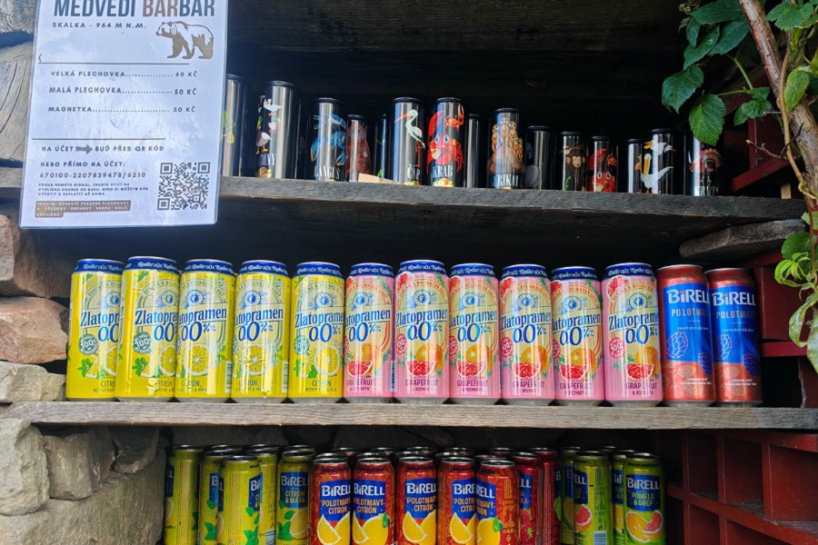 Na vrcholu Skalky si turisté pochvalují samoobslužný minibar s nápoji (platba přes QR).